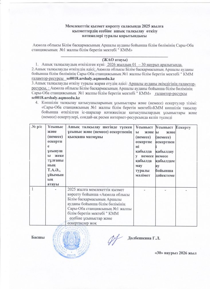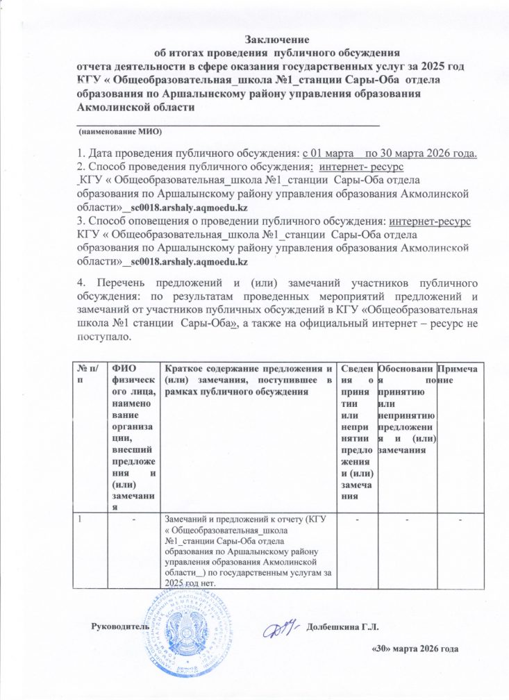 Коммунальное государственное учреждение "Общеобразовательная школа № 1 станции Сары-Оба отдела образования по Аршалынскому району управления образования Акмолинской области"