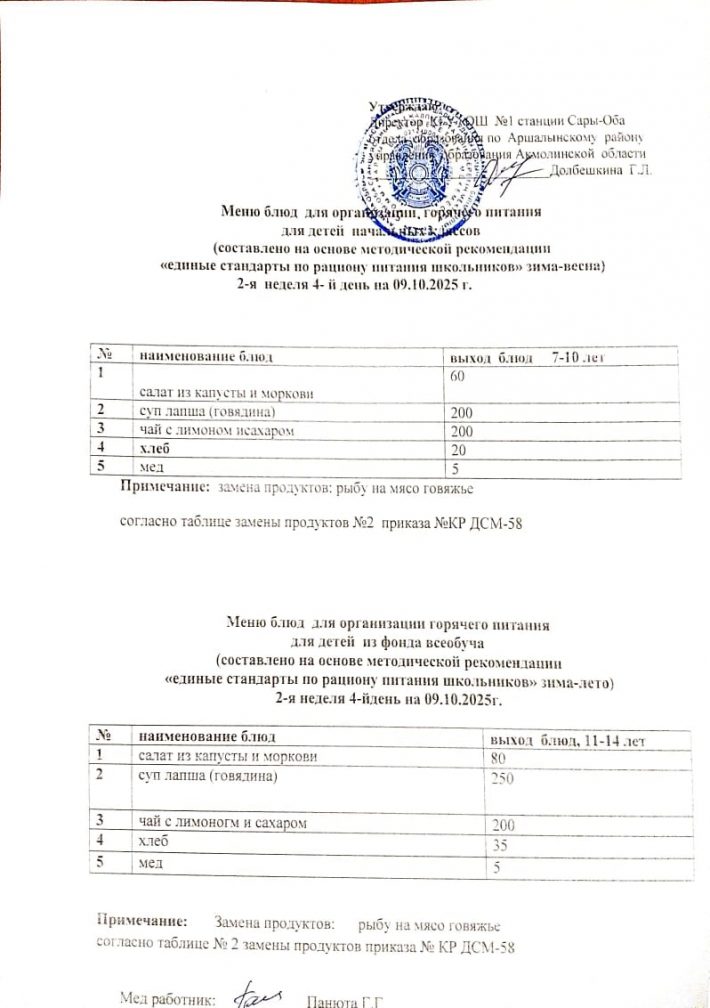 Мәзір 09.10.