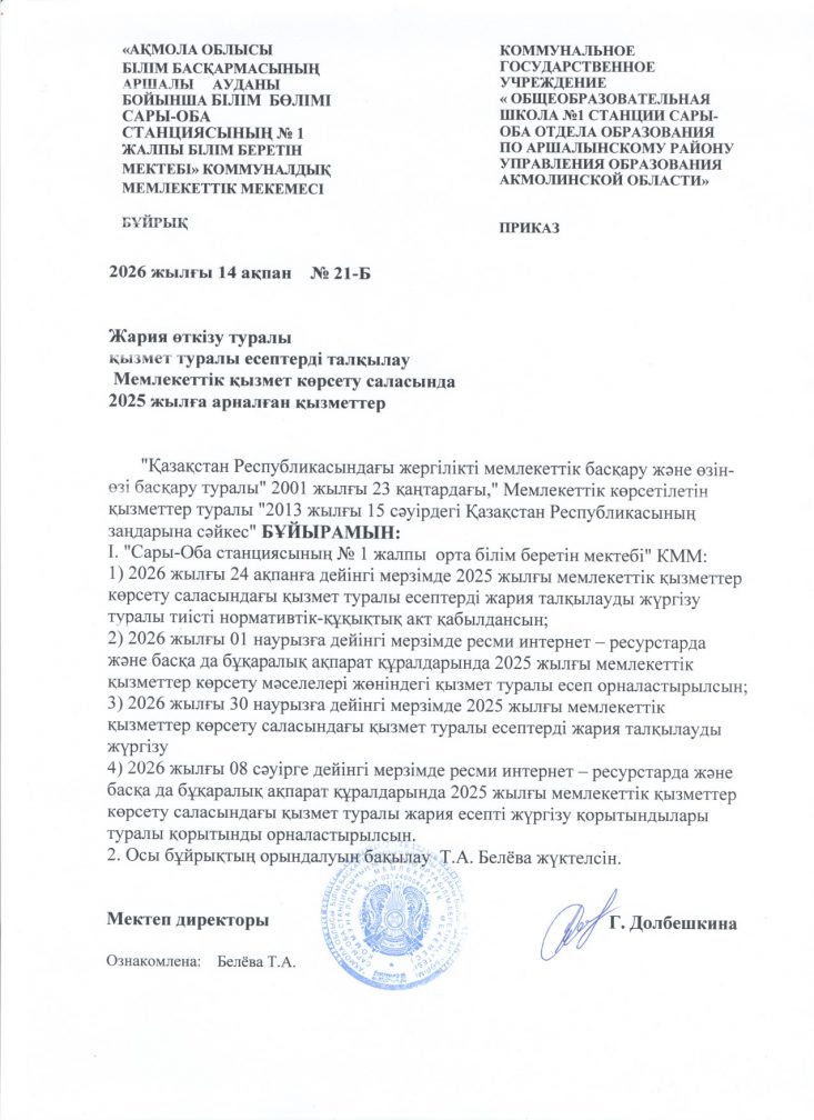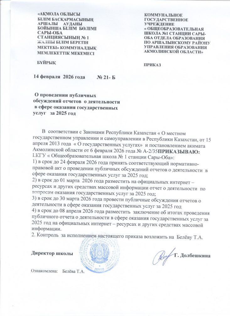 Коммунальное государственное учреждение "Общеобразовательная школа № 1 станции Сары-Оба отдела образования по Аршалынскому району управления образования Акмолинской области"