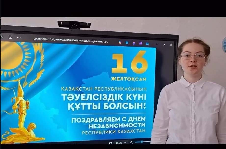 "Адал азамат" Бірыңғай тәрбие бағдарламасы аясында құндылық - тәуелсіздік және патриотизм, 10 сынып оқушысы Петрущак в. ҚР Тәуелсіздік күнімен бейне құттықтау дайындады.