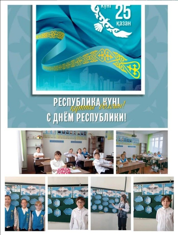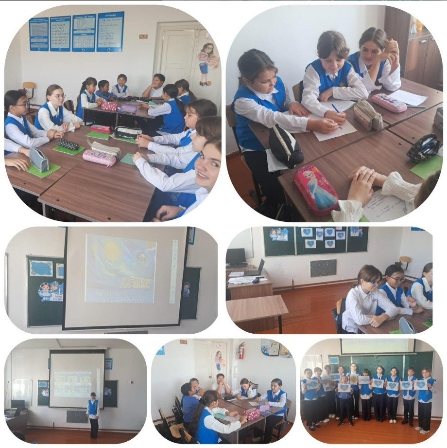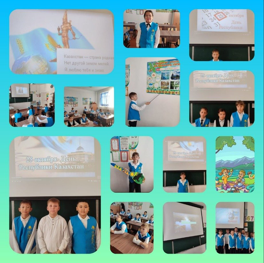"Адал азамат" тәрбие бағдарламасы аясында құндылық: патриотизм және Тәуелсіздік және республика күніне орайластырылған іс-шаралар, 2025 жылғы 20 қазанда 4-сыныпта Республика күніне арналған сынып сағаты өткізілді.Балалар мерекенің пайда болу тарихын білді,...