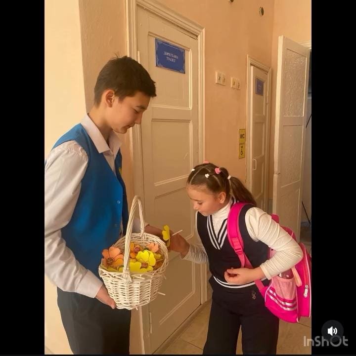 11 қазан - Халықаралық қыздар күні қарсаңында мектептің өзін-өзі басқару көшбасшылары біздің мектептің әдемі жартысын құттықтап, жақсы көңіл-күй сыйлады