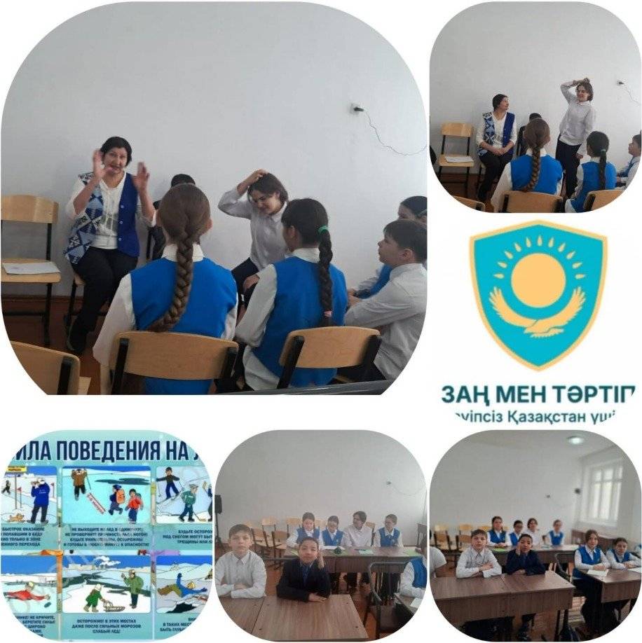"Адал азамат" Бірыңғай тәрбие бағдарламасы, "Заң және тәртіп" айлығы шеңберінде 19. 01. 2026 ж 6-сынып үшін "қорқытудан қорғану "сынып сағаты өтті Қауіпсіздік сабағы 18. Мұздағы қауіпсіздік ережелері"