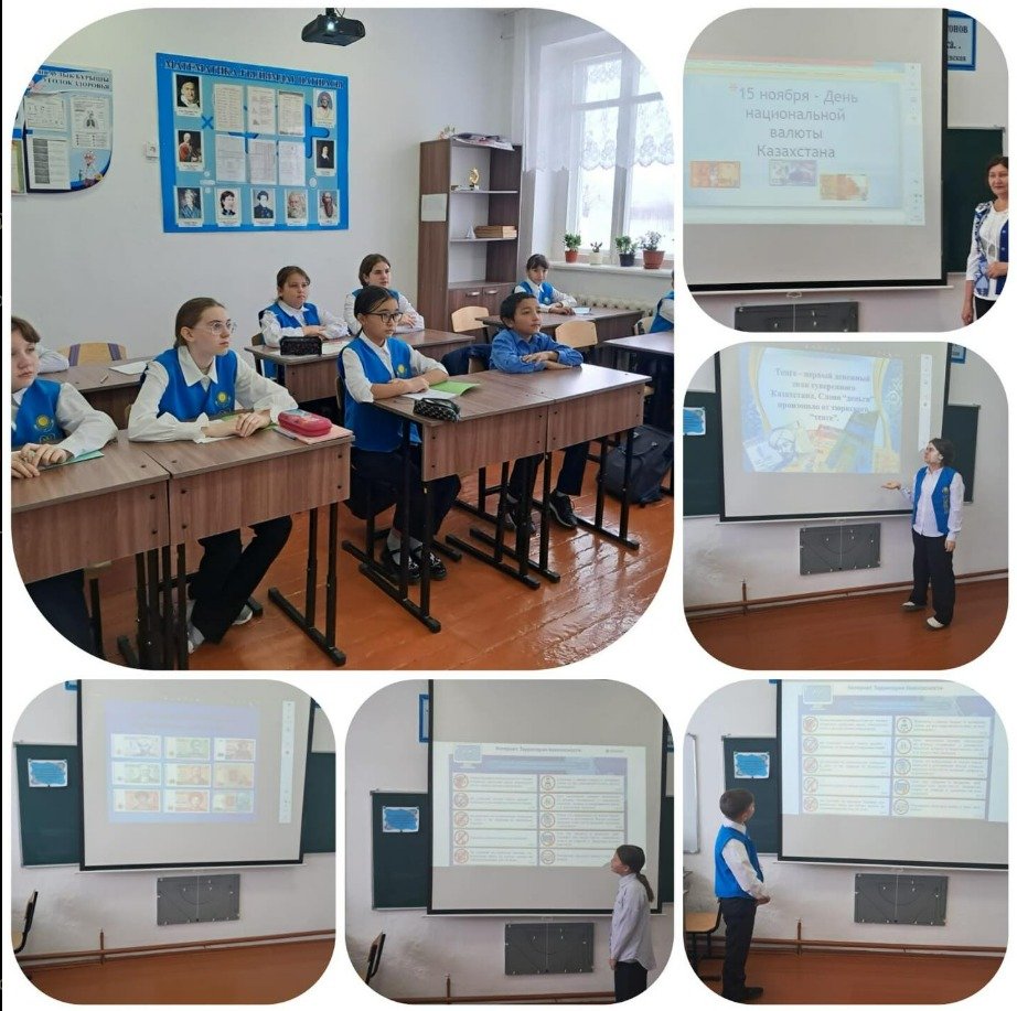 "Адал азамат" Бірыңғай бағдарламасы аясында құндылық-әділдік және жауапкершілік, 6-сыныпта "15 қараша-Ұлттық валюта күні" тақырыбында сынып сағаты өткізілді.