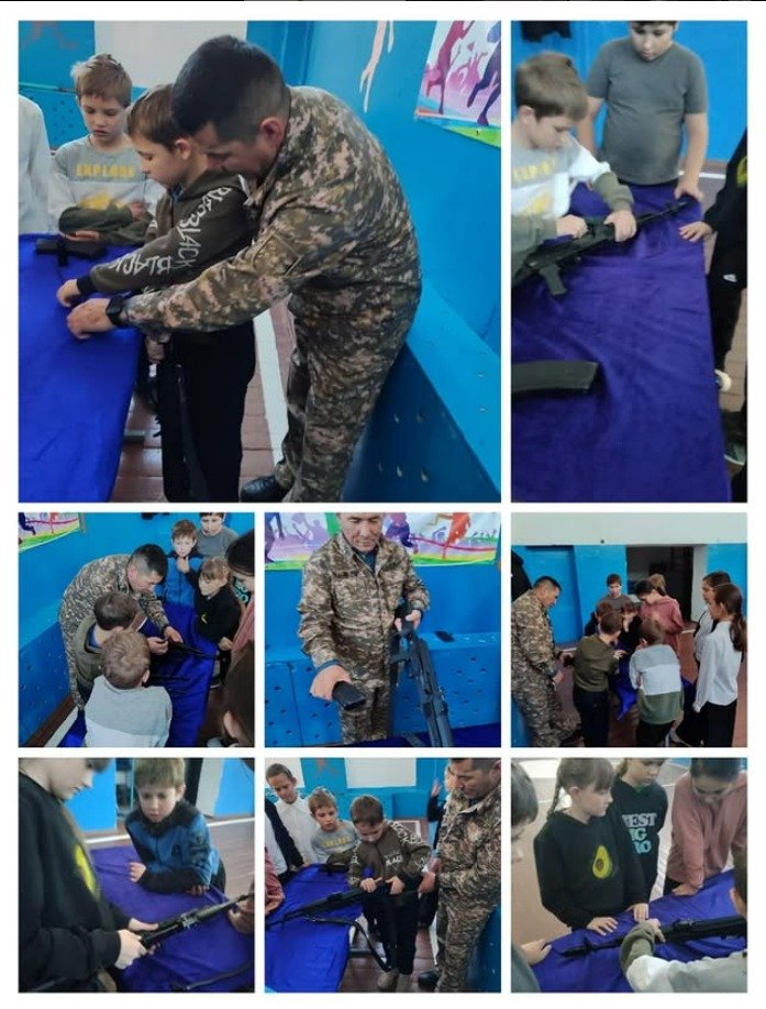 Дене шынықтыру және АӘДП онкүндігі аясында Аәдп мұғалімі Д. Ж. Дюсекеев 3-11 сыныптар үшін АК74М автоматын толық бөлшектемеу және құрастыру бойынша практикалық сабақ өткізді .