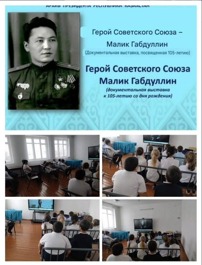 Дене шынықтыру және АӘД онкүндігі аясында АӘД мұғалімі Д. Ж. Дүйсекеев жазушы, қоғам қайраткері, Кеңес Одағының Батыры Мәлік Ғабдуллиннің туғанына 110 жыл толуына арналған сыныптан тыс іс-шара өткізді.