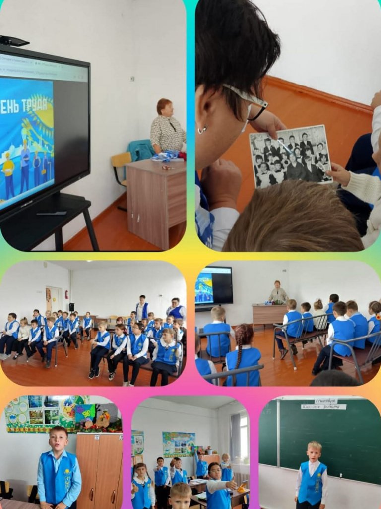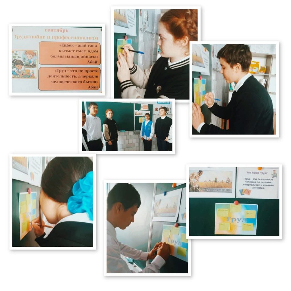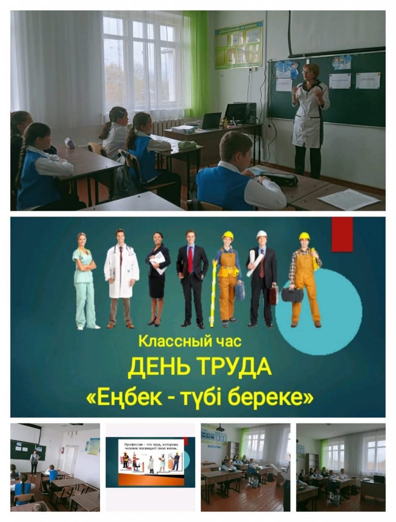 "Адал азамат" тәрбие бағдарламасы аясында "Еңбегі адал - жас өрен" жобасы, құндылығы - еңбекқорлық және кәсіпқойлық, 1-сыныпта "еңбек-бата" сынып сағаты өткізілді. Мақсаты: балаларды әртүрлі мамандықтармен таныстыру