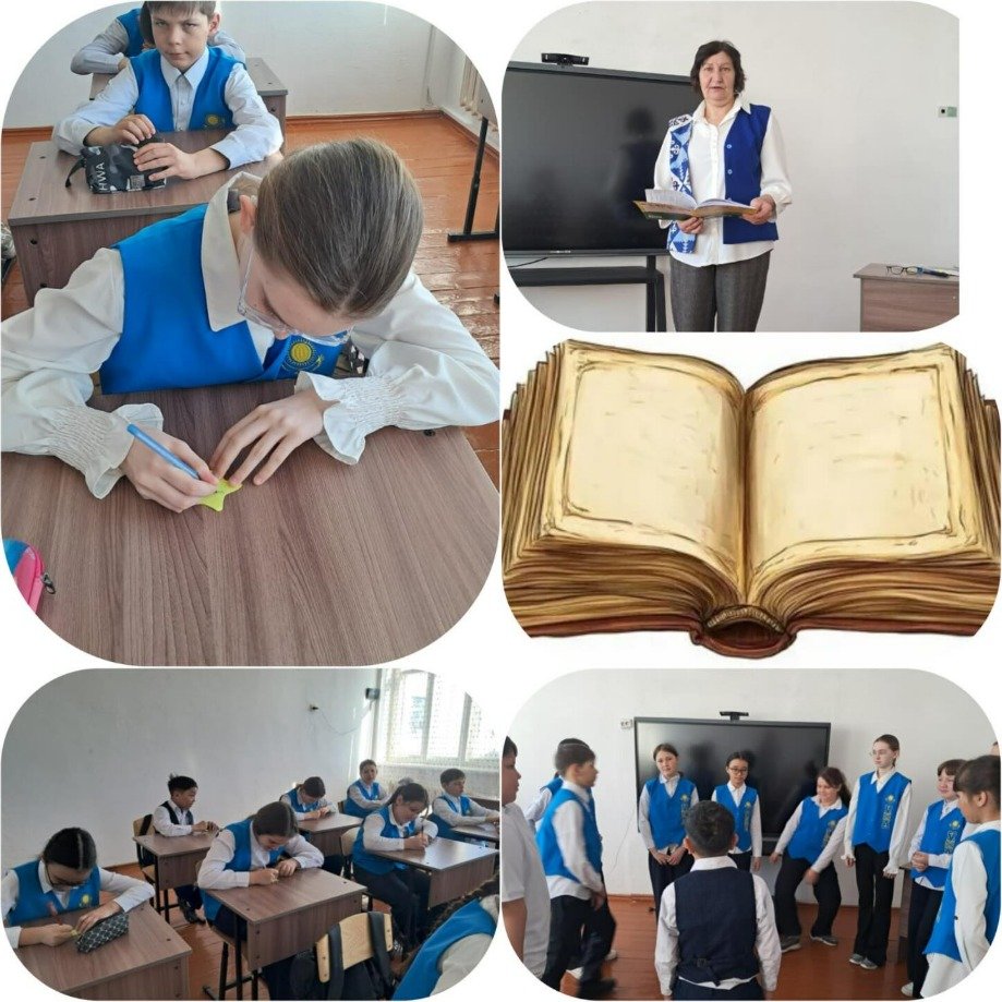 "Адал азамат" Бірыңғай тәрбие бағдарламасы аясында, "Балалар кітапханасы" жобасы, 30 наурызда 8-сыныпта Халықаралық Балалар кітабы күні мен Ғылым күніне арналған "Кітап - сарқылмас қайнар көзі" тақырыбында сынып сағаты өтті
