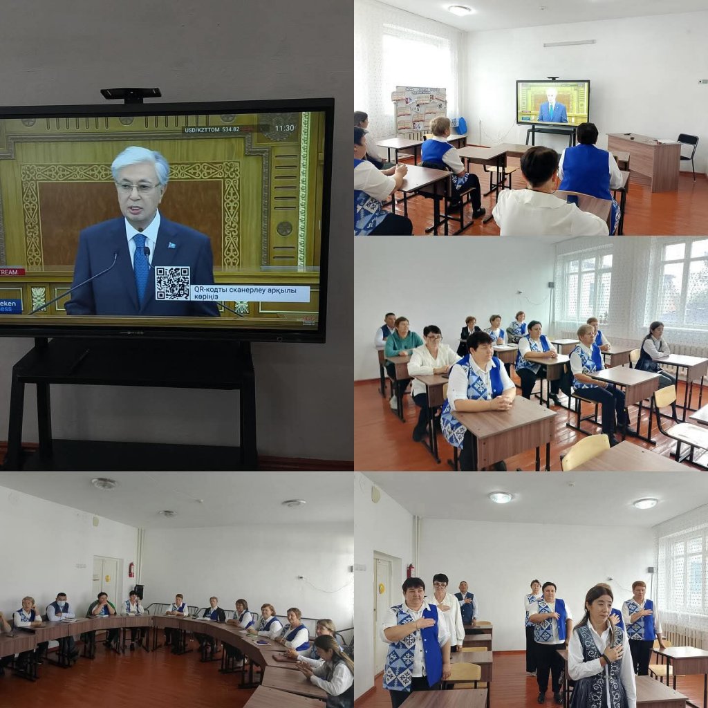 Мектеп ұжымы Қазақстан Республикасы Президентінің жыл сайынғы Жолдауын қарауға және талқылауға қатысты.
