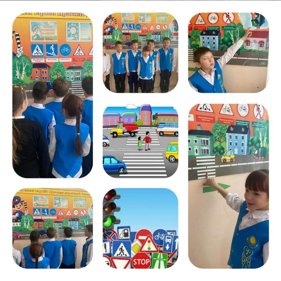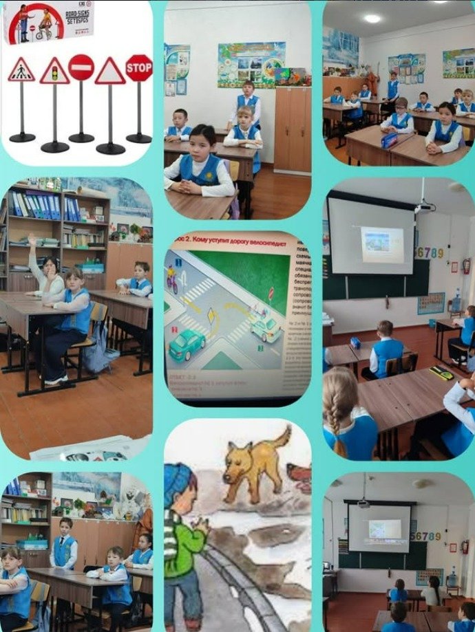 "Адал азамат" Бірыңғай тәрбие бағдарламасын іске асыру шеңберінде "Қауіпсіз қоғам" жобасы 08.12.2025 ж. 2-3 сыныпта ЖЖЕ туралы білімді бекіту мақсатында "Жол белгілері және жол таңбасы"сынып сағаты өткізілді