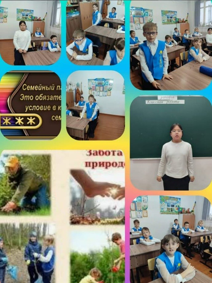 "Адал азамат" Бірыңғай тәрбие бағдарламасын іске асыру шеңберінде "Заң және тәртіп" жобасы 01.12..2025 ж.4-сыныпта оқушыларды табиғатты қорғау бойынша белсенді іс-әрекетке ынталандыру мақсатында "біз табиғатқа қамқорлық жасаймыз"атты сынып сағаты өткізілді....