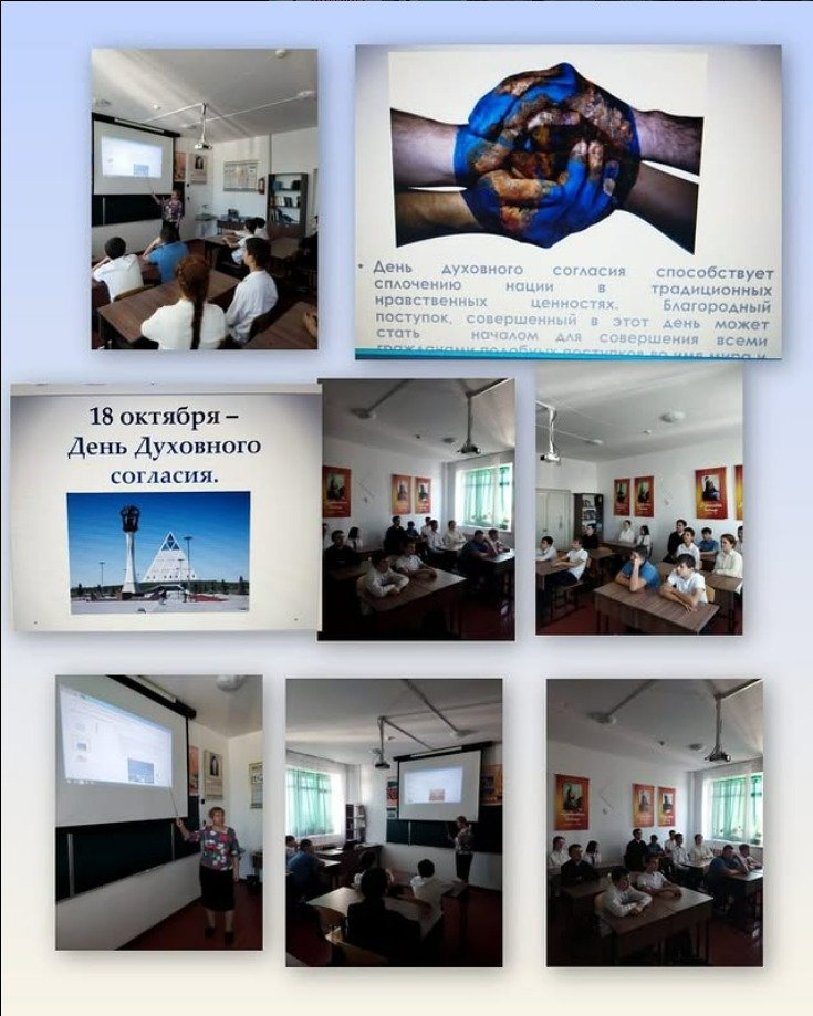 Тарих пәнінің мұғалімі В. А. Абельдинова 5-11 сынып оқушылары арасында 18 қазан-Рухани келісім күніне орай ақпараттық әңгіме өткізді.