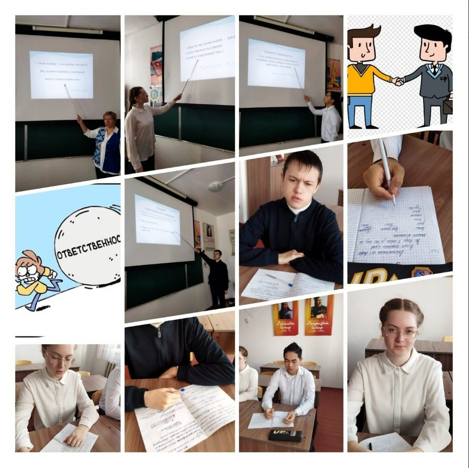 10-11 сыныптарда "өзім үшін және басқалар үшін жауапкершілік" жобасы бойынша "жауапкершілік - Менің таңдауым"тақырыбында №2 сабақ өткізілді.