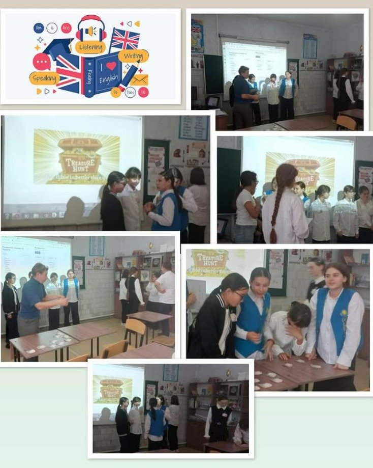 Қазақ және ағылшын тілдері апталығын өткізу жоспарына сәйкес, "Адал азамат" Бірыңғай тәрбие бағдарламасын, "ҰШҚЫР ой АЛАҢЫ" жобасын іске асыру аясында 20 қарашада 6-8 сынып оқушылары арасында "Treasure Searching"квест - викторинасы өткізілді.