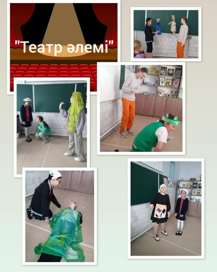 "Адал азамат" Бірыңғай тәрбие бағдарламасын, "Шабыт" жобасын, "Балалар кітапханасы" жобасын іске асыру аясында "Театр әлемі"мектеп театр клубының сабағы ұйымдастырылды. Сабақтың мақсаты: оқушылардың бойында қазақ ертегілерінің кейіпкерлері, әдеби ертегілердің кейіпкерлері мысалында өз мәдениетіне деген ұлттық мақтаныш пен құрмет сезімін қалыптастыру; оқушының жеке басының интеллектуалдық, адамгершілік және эмоционалды көрінуіне, көркемдік іс-әрекеттегі қабілеттерін ашуға және дамытуға жағдай жасау. Клуб мүшелері өздерін халық және әдеби ертегілердің кейіпкерлері ретінде таныстырып, "Алдар Көсе және сиқырлы сандық" ертегісінің сюжеттерін, сондай-ақ г.Х. Андерсеннің "Дюймовочка"Ертегісін ойнады. Мұғалім: Жаңабаева Н.А.