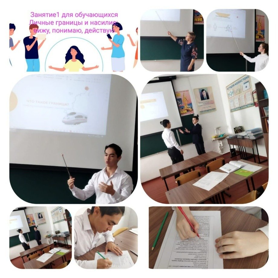 Осы сабақ барысында зорлық-зомбылықтың әртүрлі нысандары , олардың көрінісі мен ұзақ мерзімді салдары талқыланды; мысалдармен жеке шекараны бұзудың күрделі жасырын жағдайлары анықталды, зорлық-зомбылық пен шекараны бұзуға сындарлы әрекет ету дағдылары пысықталды.