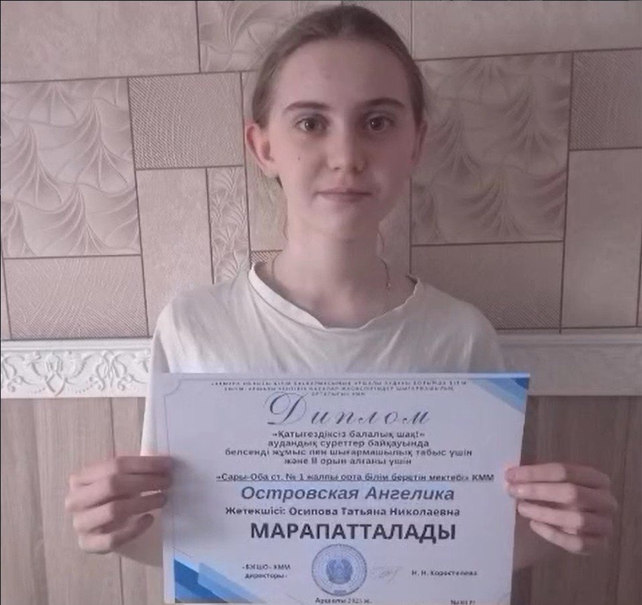 "Адал азамат" Бірыңғай тәрбие бағдарламасы аясында құндылық - тәуелсіздік және патриотизм, 6 сынып оқушысы А. Островская ҚР Тәуелсіздік күніне "Менің жетістіктерім - Отаным"тақырыбында шығармашылық жұмыс дайындады