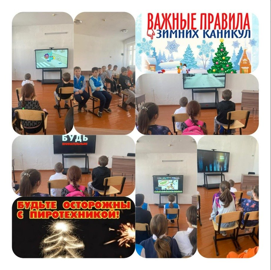 "Оқушылардың қауіпсіздігін қамтамасыз ету", бастауыш сынып оқушылары арасында тақырыптық бейнероликтерді қарау ұйымдастырылып, "ЖЖЕ ережелері", " Абайлаңыз, пиротехника!", "Жұқа мұз", "қысқы демалыс кезінде қауіпсіз жүріс-тұрыс ережелері".