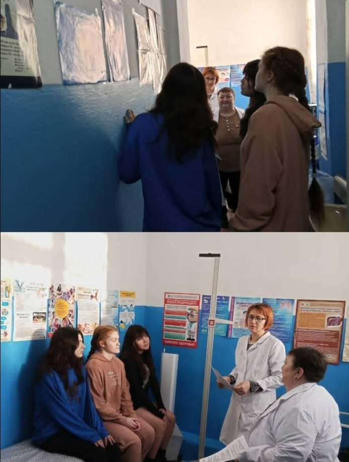 "Адал Азамат" Бірыңғай тәрбие бағдарламасы, оқушылар арасында СӨС қалыптастыру және насихаттау және аурулардың алдын алу жөніндегі іс-шаралар жоспары бойынша "Өмірге салауатты қадам" ай сайынғы алдын алу іс-шаралары шеңберінде ФАП меңгерушісі Л.И. Зайцева балмен бірлесіп. Панюта мектебінің қызметкері Г. Г., жоғары сынып оқушыларымен тақырыптар бойынша әңгімелер жүргізді: