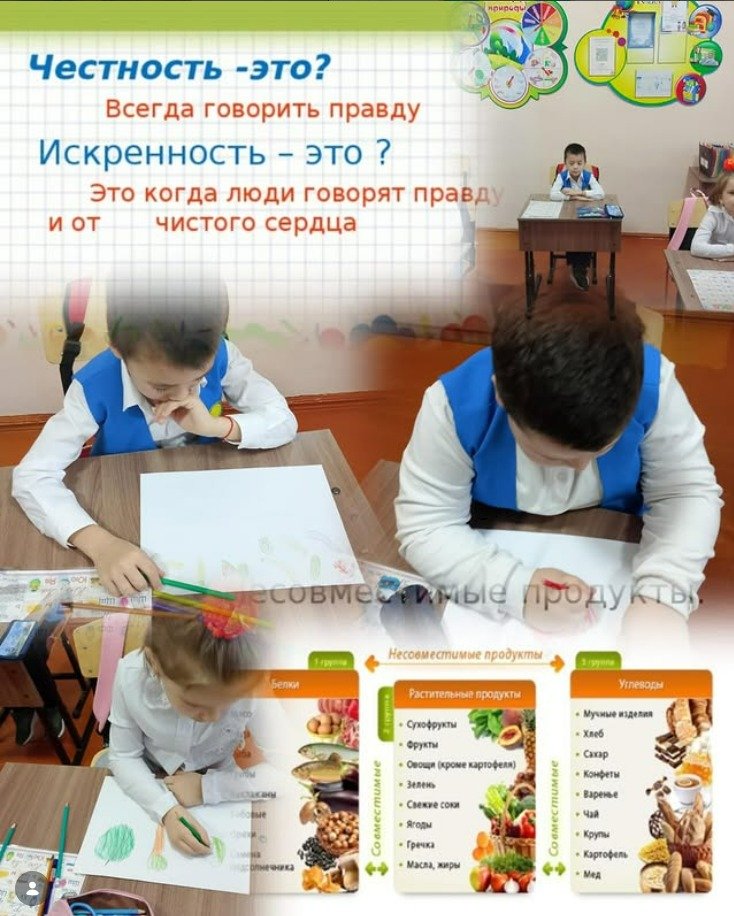 Балалар әңгімеге үлкенствиемыласпен қатысып, сұрақтарға жауап беріп, жұмбақтар шешті. Олар сізге неге адал болу керектігін айтты. Талқыланды бұл оларға болашақта қалай көмектесе алады. Олар ащы өтіріктен гөрі ащы шындық жақсы деген қорытындыға келді . Қауіпсіздік сабағы: "біріктіруге болмайтын өнімдер комбинациясы" мақсаты: біріктіруге болмайтын өнімдер комбинациясын есте сақтаңыз. Тағы да пайдалы тамақ пен дұрыс тамақтану туралы әңгімелестік . Сынып жетекшісі Андреева Н. В
