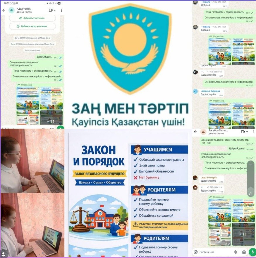"Адал Азамат" Бірыңғай тәрбие бағдарламасы аясында "Заң және тәртіп" айлығының іс – шаралар жоспары және "Біз сыбайлас жемқорлыққа қарсы" аудандық акциясы бойынша "Адал Ұрпақ" мектеп клубының белсенділері 15.01.26 ж. "адалдық" тақырыбында онлайн (ауа-райына байланысты) парасаттылық сағаттарын өткізді және әділеттілік"
