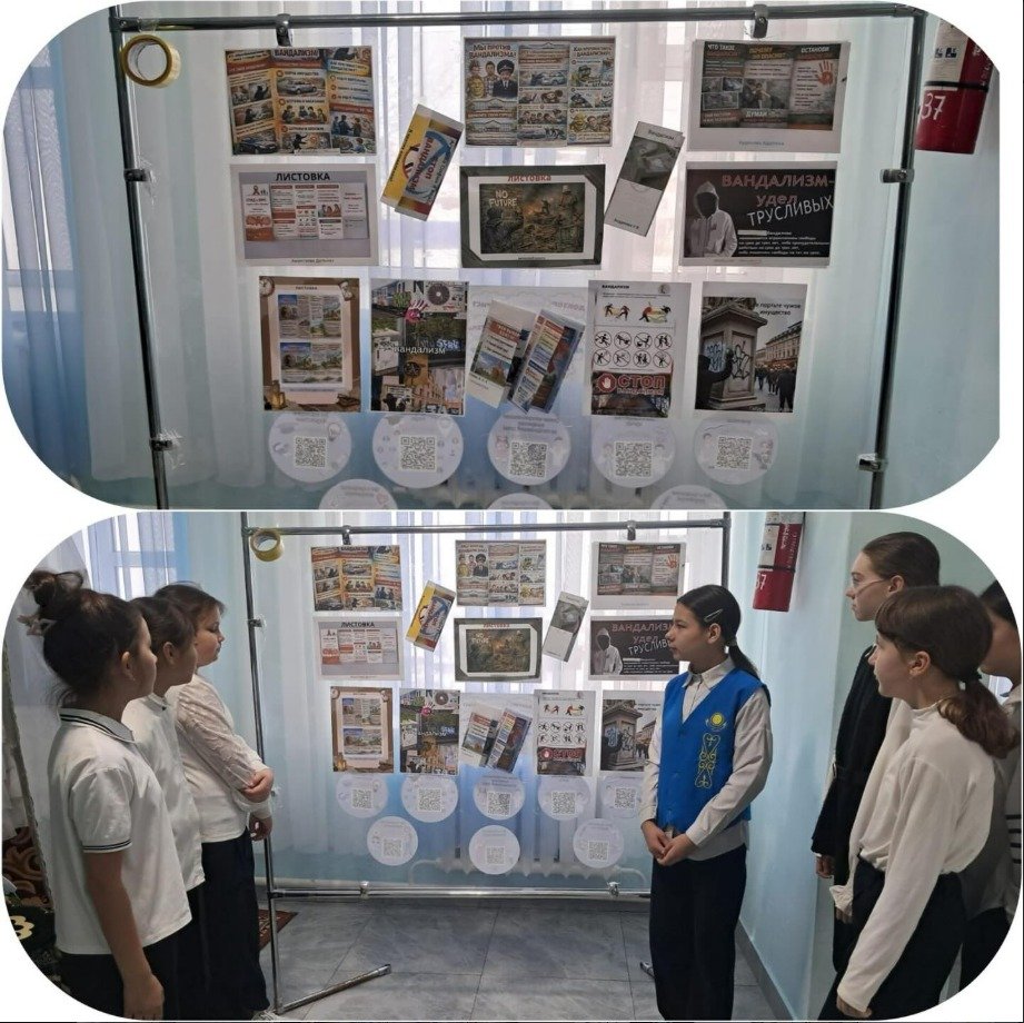 "Адал азамат" Бірыңғай тәрбие бағдарламасы аясында ай сайынғы "қоғамдық мұлықты қорғау!"мектеп парламентінің жетекшілері "біз вандализмге қарсымыз"стендін рәсімдеді. Біздің ауылдың, мектептің және ауланың сұлулығы әрқайсымыздан басталады. Вандализм-бұл бүлінген қабырғалар ғана емес, бұл басқа адамдардың жұмысына және өздеріне деген құрметсіздік. Біз қоршаған әлемге ұқыпты қарау күшті және жетілген тұлғаның белгісі деп санаймыз.