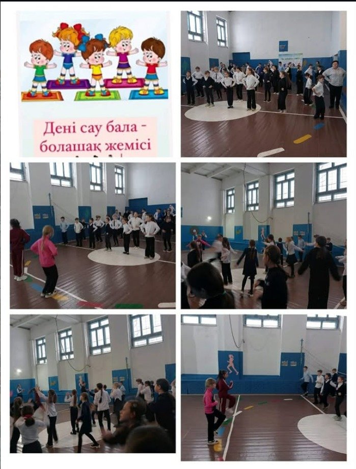 ҚР Білім Министрлігінің бұйрығына сай әр бейсенбі сайын, мектепте барлық оқушылар мен ұстаздардың қатысуымен және “Адал азамат” Бірыңғай тәрбие бағдарламасының “Өмірге салауатты қадам” ай сайынғы профилактикалық іс-шараларының ұсынысы бойынша дене шынықтыру мұғалімі Дюсекеев Д.Ж қадағалаумен ұйымдастыруының нәтижесінде “Дене шыңықтыру жаттығуларын”өткізді. Мақсаты: Қазақстан Республикасының Білім беру ұйымдарында құру, оқушылардың деңсаулығын сақтаудың, олардың оқу белсенділігін арттырудың және салауатты өмір салты мәдениетін қалыптастырудың тиімді құралы ретінде дене шынықтырудың тұрақты тәжірибесі.