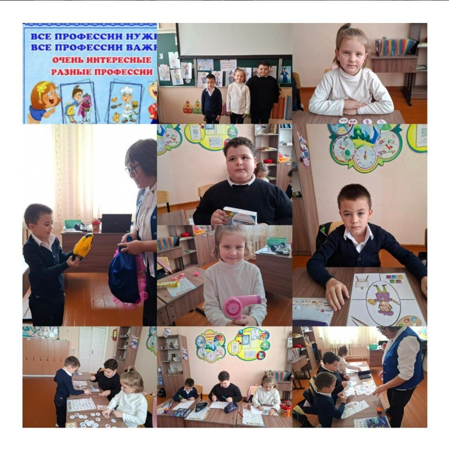 1-сынып оқушылары үшін әңгіме жүргізілді, барлық мамандықтар қажет, барлық мамандықтар маңызды", онда балалар мамандықтар туралы жұмбақтар шешіп, ойындар ойнады:,, ғажайып қап"(балалар әртүрлі құралдарды таңдап, кімге тиесілі екенін айтты),,, мамандықты тап" (жұмбақтар жинады, болашақта кім болғысы келетінін салды). Көптеген қызықты мамандықтар бар, олардың барлығы қажет, олардың барлығы маңызды. Балалар қызықты, көңілді және танымды болды.