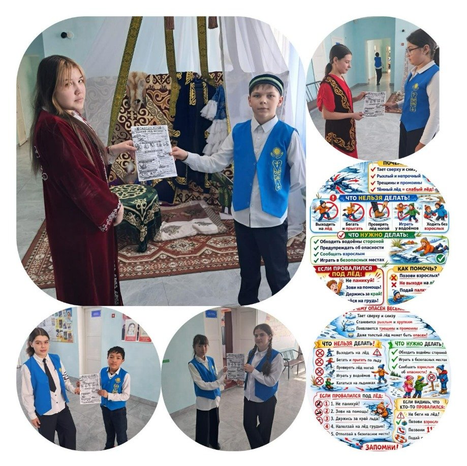 "Адал азамат" Бірыңғай тәрбие бағдарламасы аясында ай сайынғы "Қауіпсіз қоғам" профилактикалық іс-шаралары аясында мектептің өзін-өзі басқару көшбасшылары АИ көмегімен "Абайлаңыз жұқа мұз!”. Бұл жазатайым оқиғалардың алдын алуға, өлім қаупі туралы ескертуге, маусымаралық кезеңдегі су айдындарындағы мінез-құлық ережелерін түсіндіруге және адамдардың өмірін сақтауға бағытталған. Негізгі мақсат - адамдардың (әсіресе балалардың) әлсіз мұзға шығуына жол бермеу.