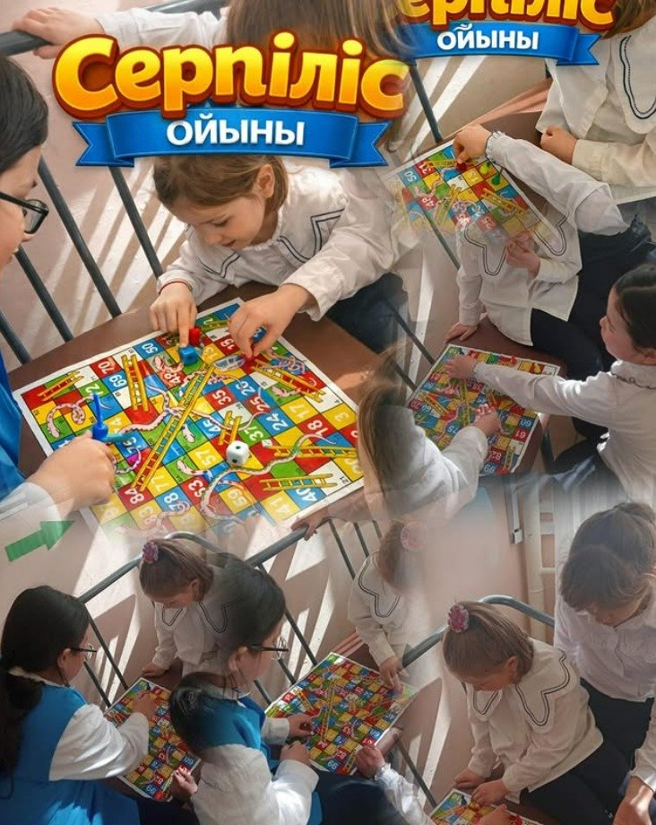 Үзіліс кезінде оқушылар «Серпіліс» ойынын ойнады. Бұл ойын балалардың қызығушылығын арттырып, жылдам ойлауына және есептеу дағдыларының дамуына ықпал етеді. Ойын барысында оқушылар кубикті лақтырып, шыққан сан бойынша алға жылжиды. Егер сатыға түссе – жоғары көтеріледі, ал жыланға тап болса – кері қайтады.